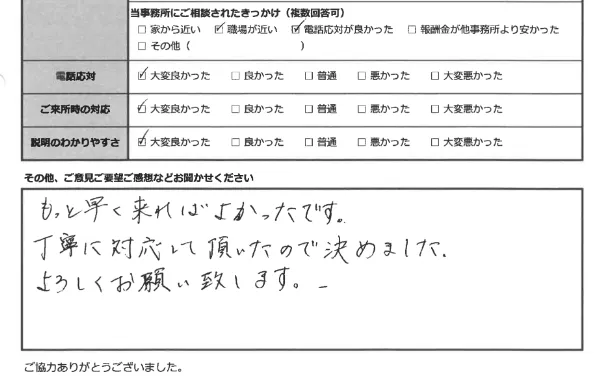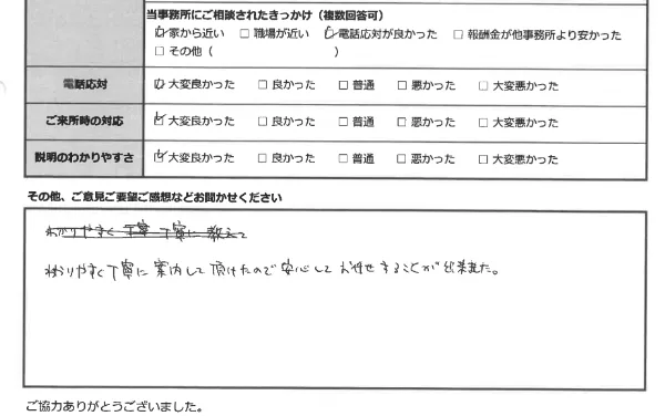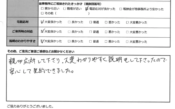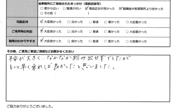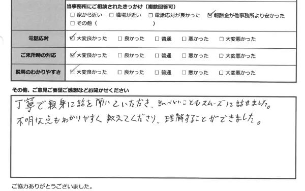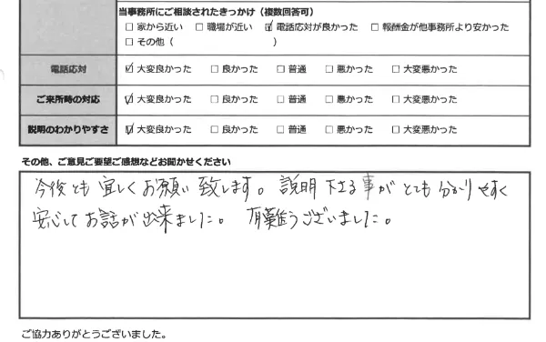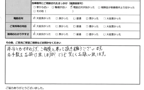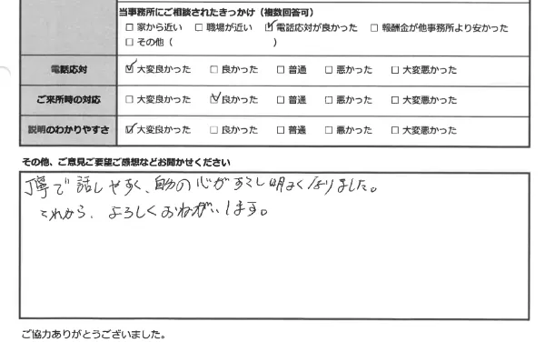 少しでも生活のご負担が軽くなるように、皆さま、費用は分割でのお支払いをしていただいております。どうぞ安心して、ご相談ください。