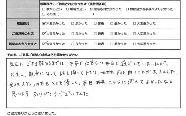 返せないと思っていた借金がなくなって、元の生活を取り戻せました。